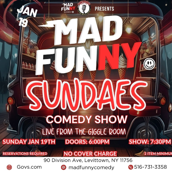 Mad Funny Sundaes is Long Island’s hottest comedy show. We have live shows on special Sundays at the world-famous Governors Comedy Club.